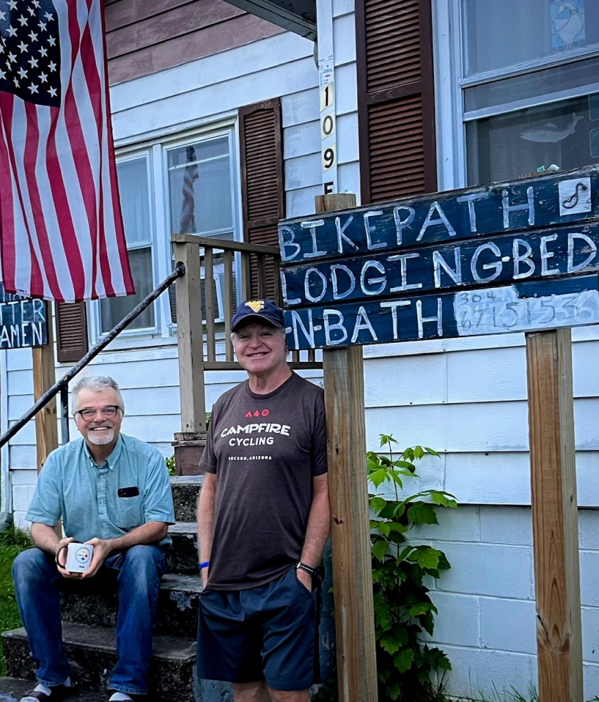 After hours of pushing through the rain, we arrived at our Paw Paw, West Virginia b&b, drenched but triumphant. That evening, after we sprayed down our bikes and muddy rain jackets, we threw our drenched and soiled clothing in our host’s washer and walked to the local gathering spot for dinner. Thereās a unique satisfaction that comes from overcoming obstacles as a team, and it bolstered our determination for the days ahead.