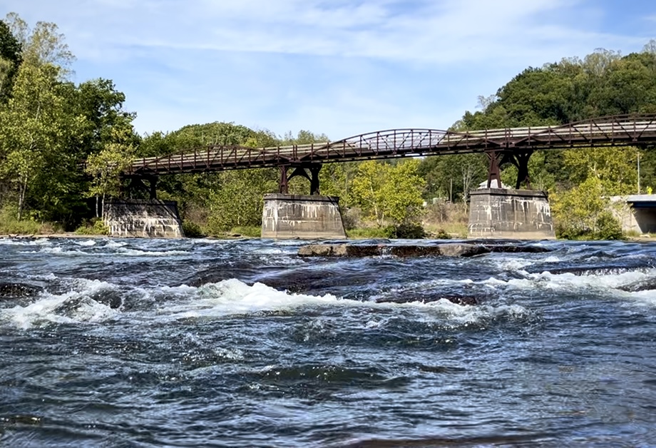 One of the most mesmerizing aspects of our journey was cycling under the natural canopy created by towering trees. The dappled sunlight filtered through the leaves, casting ever-changing patterns on the gravel trail beneath us. It was a visual dance that seemed orchestrated by nature itself, captivating us as we pedaled forward. The air was fragrant with the earthy scent of moss and wildflowers, while the sounds of rippling water from the Youghiogheny and Potomac Rivers accompanied our ride, creating a soothing, rhythmic backdrop.