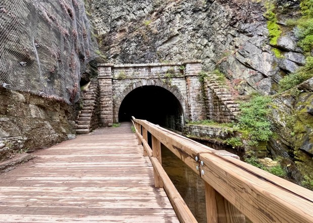 Riding through the darkness, there was a sense of vulnerability, knowing we were temporarily disconnected from the outside world, surrounded only by the echoes and the unknown stretch ahead. But with each passing moment, our eyes adjusted and there was a faint glow as the tunnelās end grew brighter. The decking and falling-rock mitigation project we saw when we popped out the other side was impressive, and we had to take a few minutes to explore how it was done.