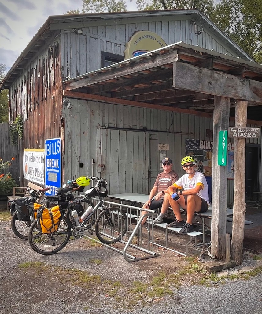 On the morning of day four, we walked out of our downtown Frostburg, Maryland hotel and were welcomed by ankle-deep puddles and foreboding skies. John looked at me through his water-splattered glasses and said with a smile, “As bad as this will be, it’ll be the day we’ll always remember most.” I nodded in agreement, wiped clear the many beads of water on my saddle, swung my leg over top, clipped in my pedals and with that, we were on our way.