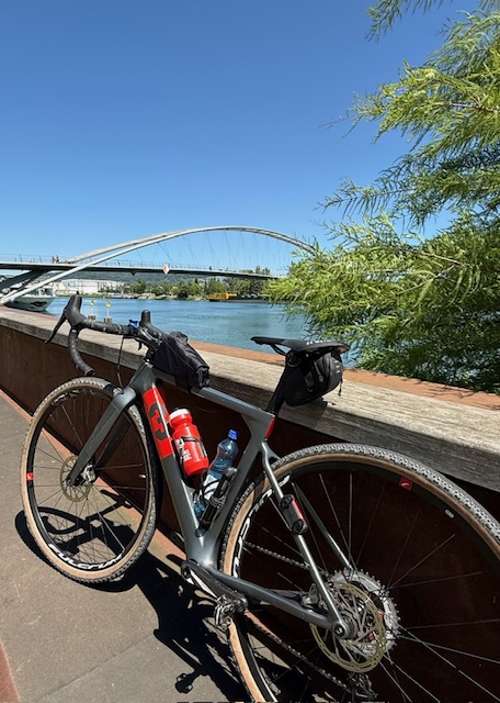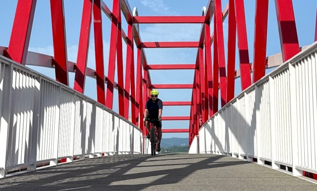 On my first day with the bike, I took it out for a 20-mile warm-up ride, partly to get a feel for it but mostly to ease my legs into cycling mode. I followed the EuroVelo 15 route south along the Rhine River, passing through the unique junction where Switzerland, Germany and France converge. The reflections on the river were stunning, and at a small plaza along the water, I saw the flags of all three nations waving in the breeze — a peaceful, symbolic reminder of how closely connected we all are.